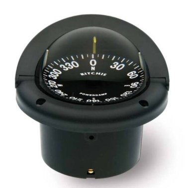 Compas de route RITCHIE à encastrer à plat sur le pont ou sur une console horizontale. Rose plate de 95mm pour voiliers et bateaux à moteurs de 8 à 12 mètres. Pivot acier haute résistance avec compensation intégrée et éclairage interne 12Vcc.