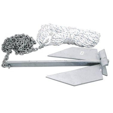 - Ancre galvanisée 5 kg + chaîne (6 mm x 5 m) et cordage polyester (8 mm x 15 m) pour une tenue optimale