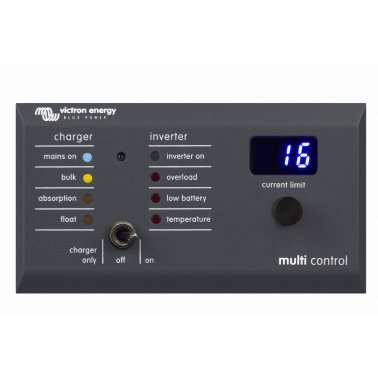 Le tableau de contrôle numérique Digital Multi Control est utilisé pour consulter et ajuster les courants d’entrée CA, et pour allumer et éteindre à distance les Multi ou les Quattro. Il est conçu pour s’intégrer élégamment au tableau de contrôle de votre système installé sur votre bateau.