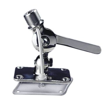 RA166 Support double articulation en acier inoxydable poli, pour fixation sur pont ou cloison, avec blocage à cliquet. Passe-câble pour câble coaxial ou GPS.